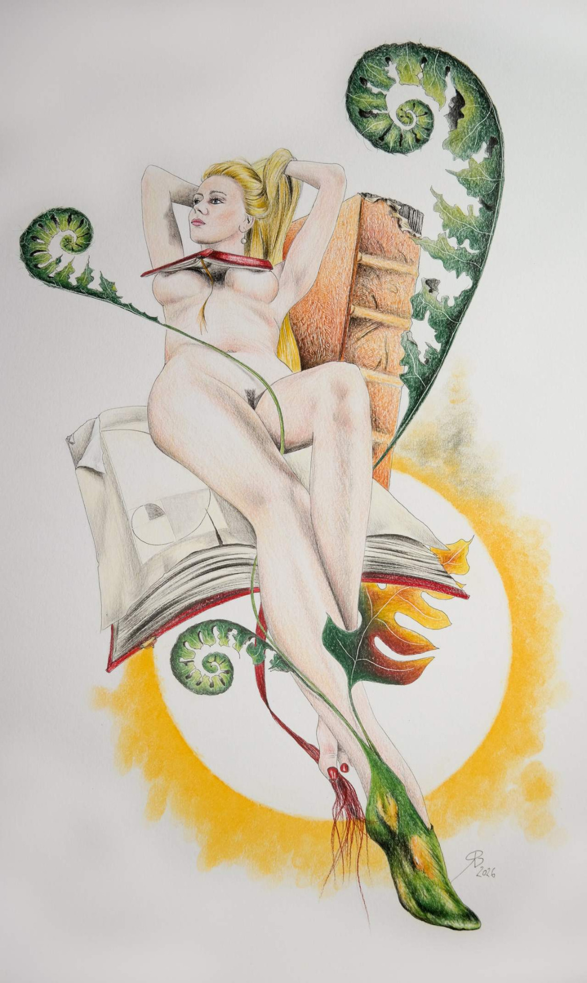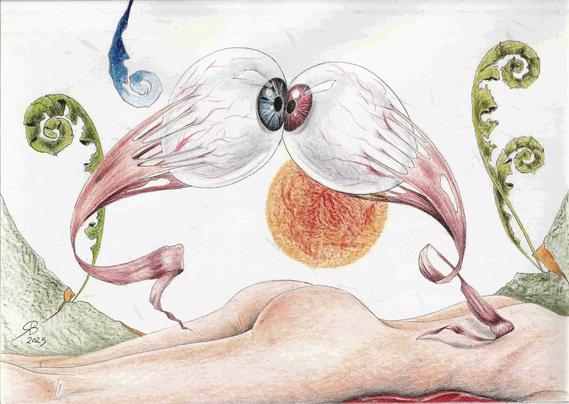 Farb- u. Aquarellstift, Tusche auf Japanpapier - 21x30 cm